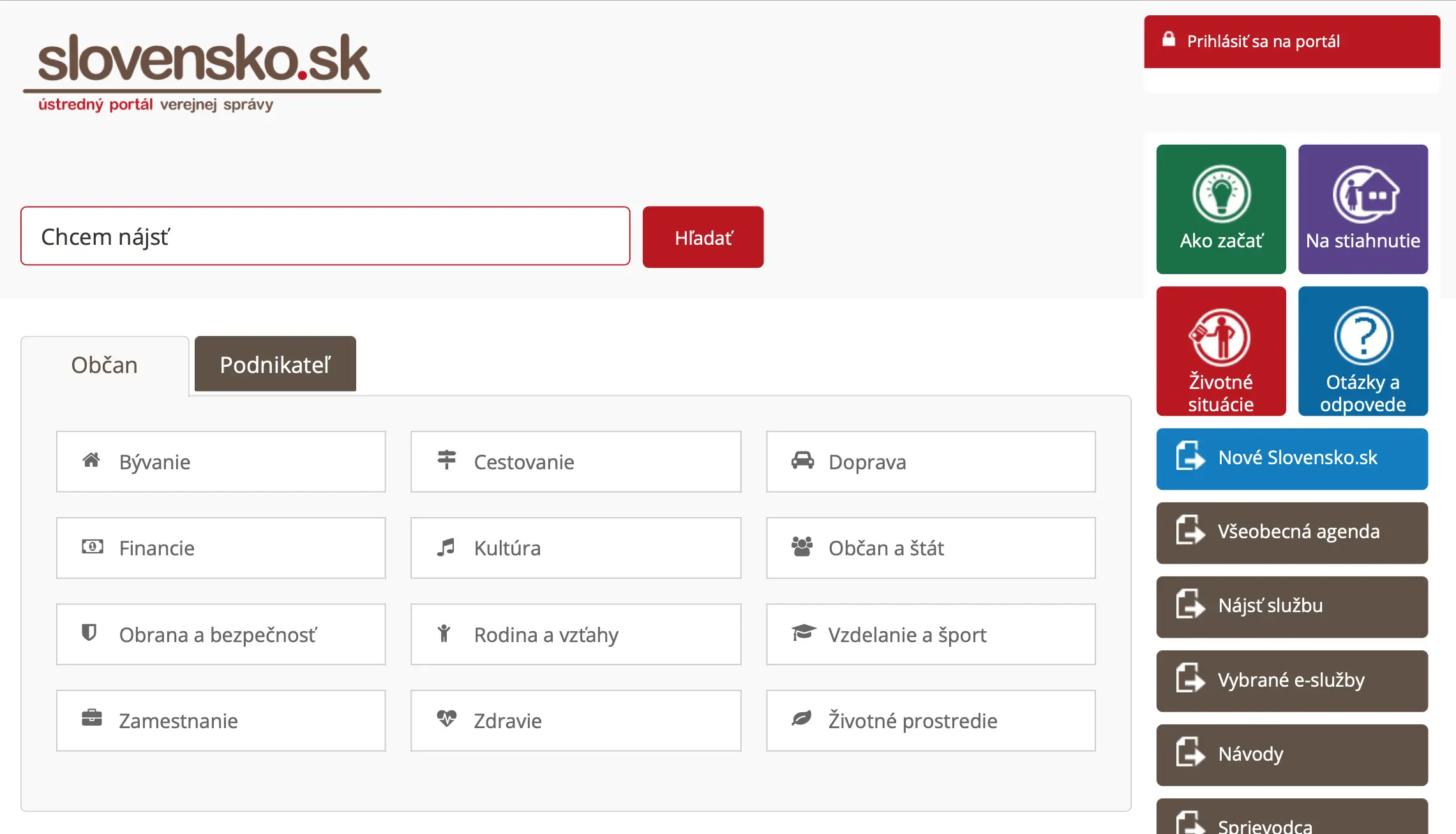 Slovensko.sk is the official public administration portal of Slovakia. It serves as a platform where users can submit applications, receive official responses, and interact with authorities online. Registration and login to the portal are required for convenient access to these services using a residence card or identity card with a chip.